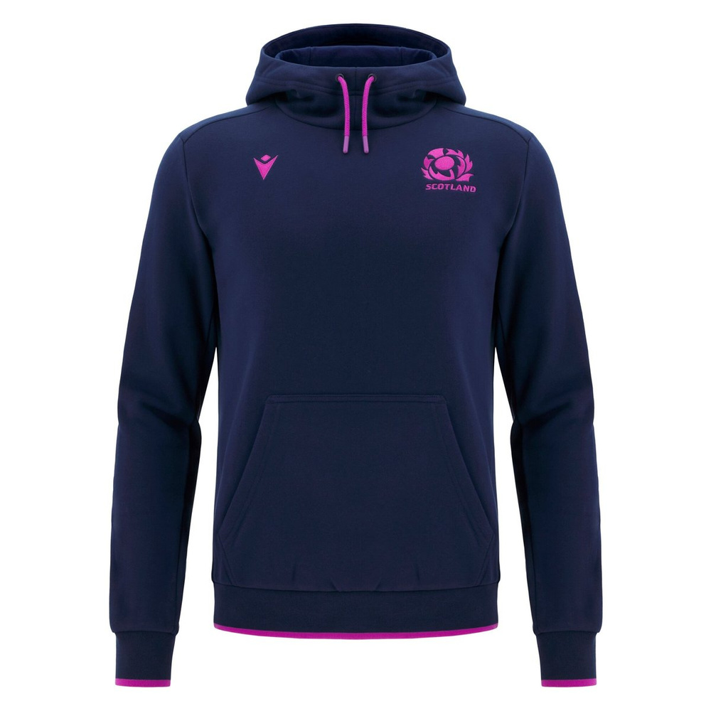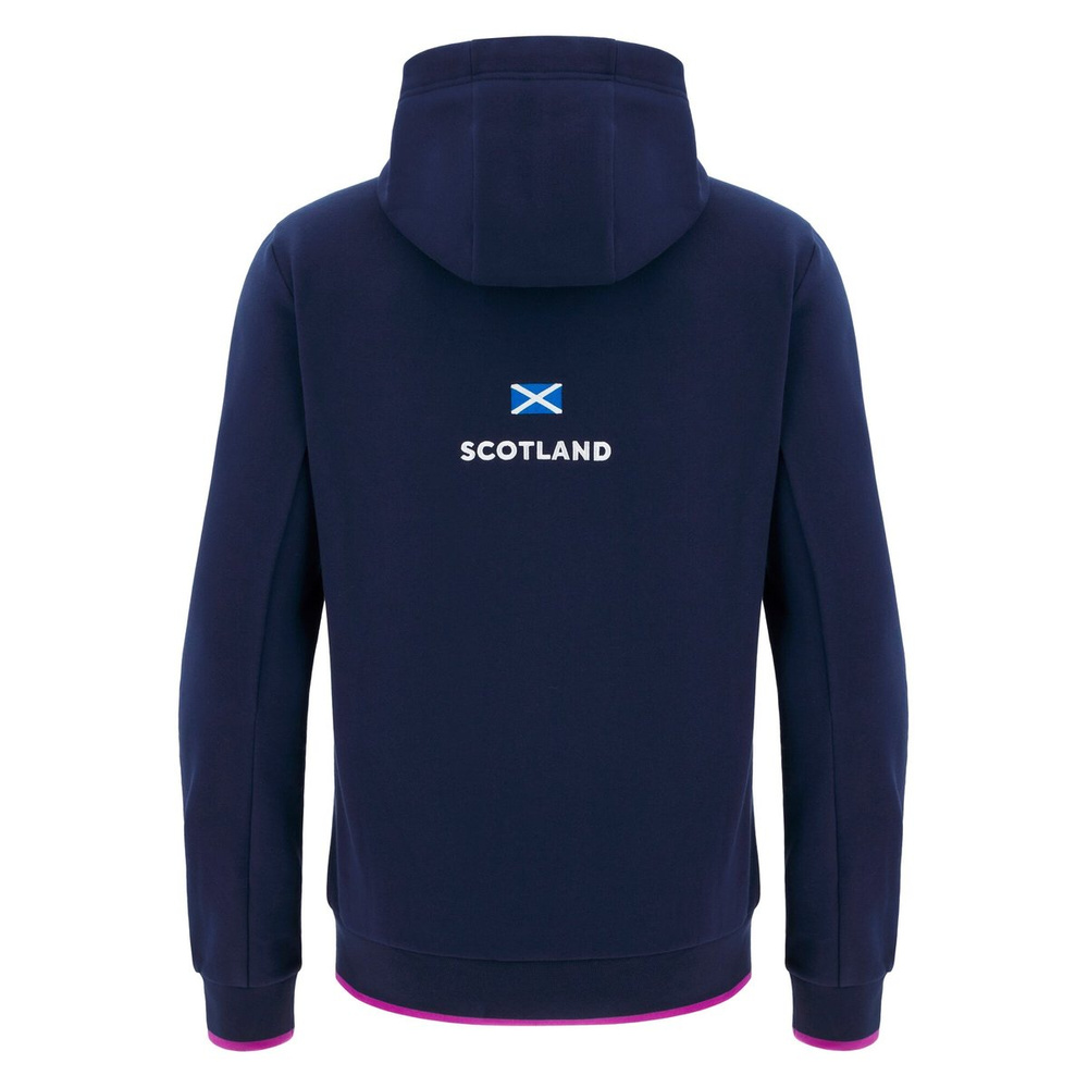 Scottish Rugby 2025/26 Travel Hoody. Designed to support you throughout your day with comfort and security. Perfect for those seeking balance between sporty spirit and versatility, with details that express team pride. (PLEASE NOTE: Size S does not have drawstrings due to regulatory restrictions) .