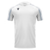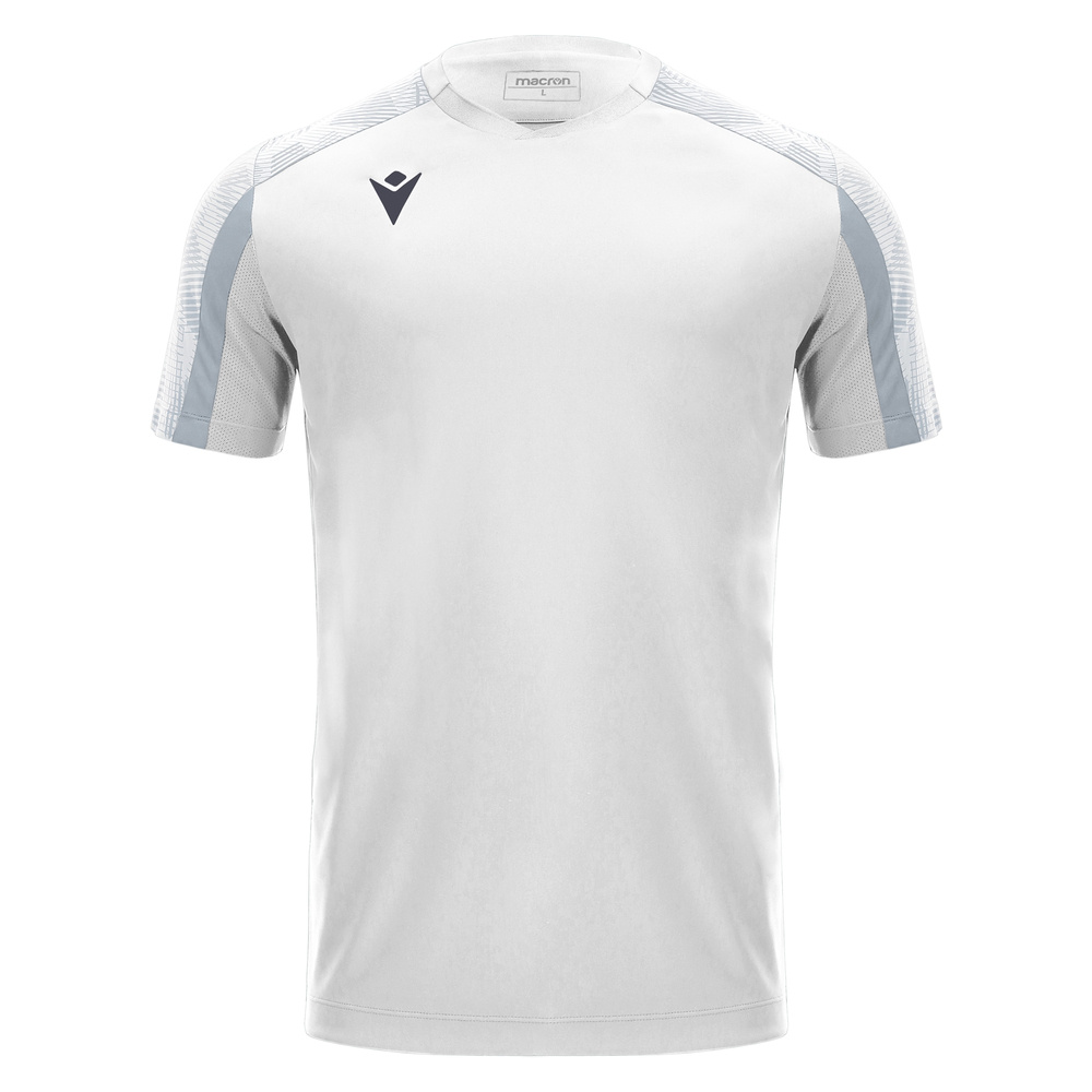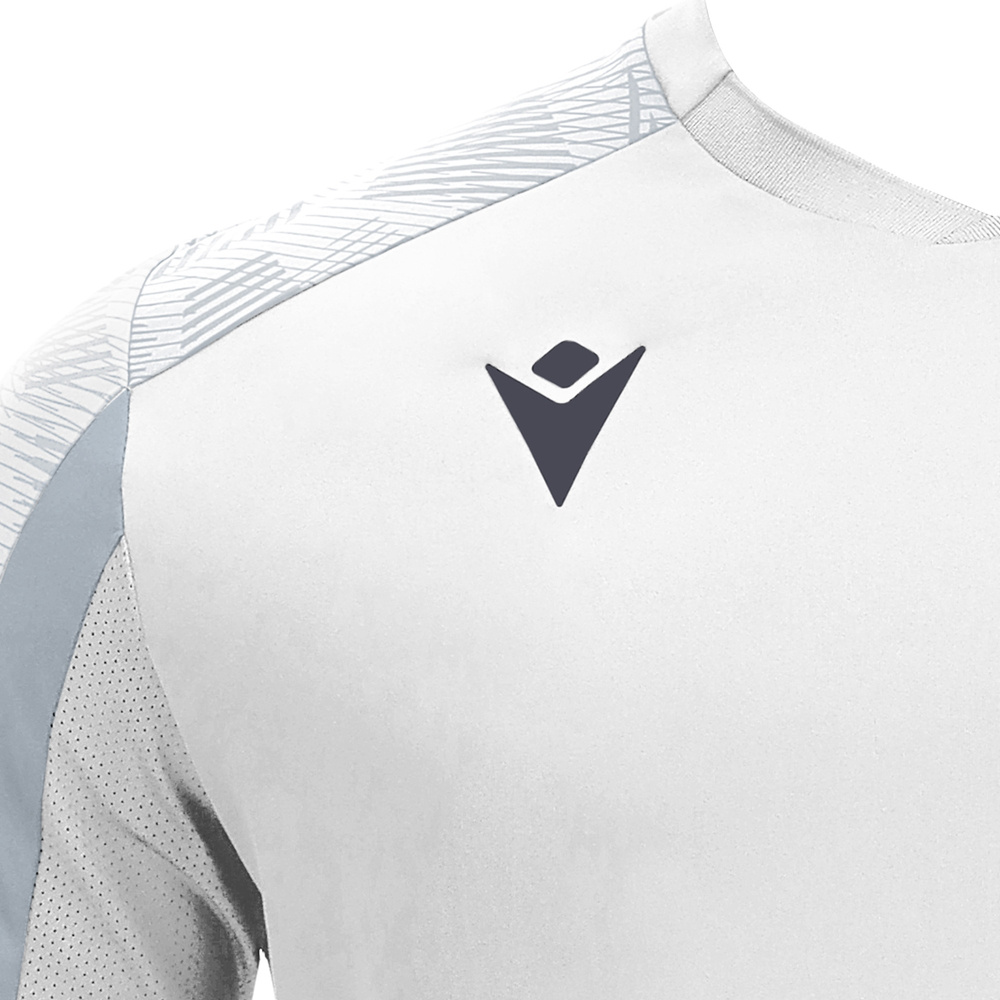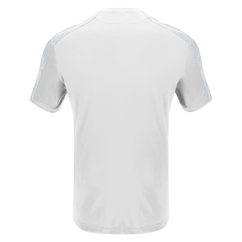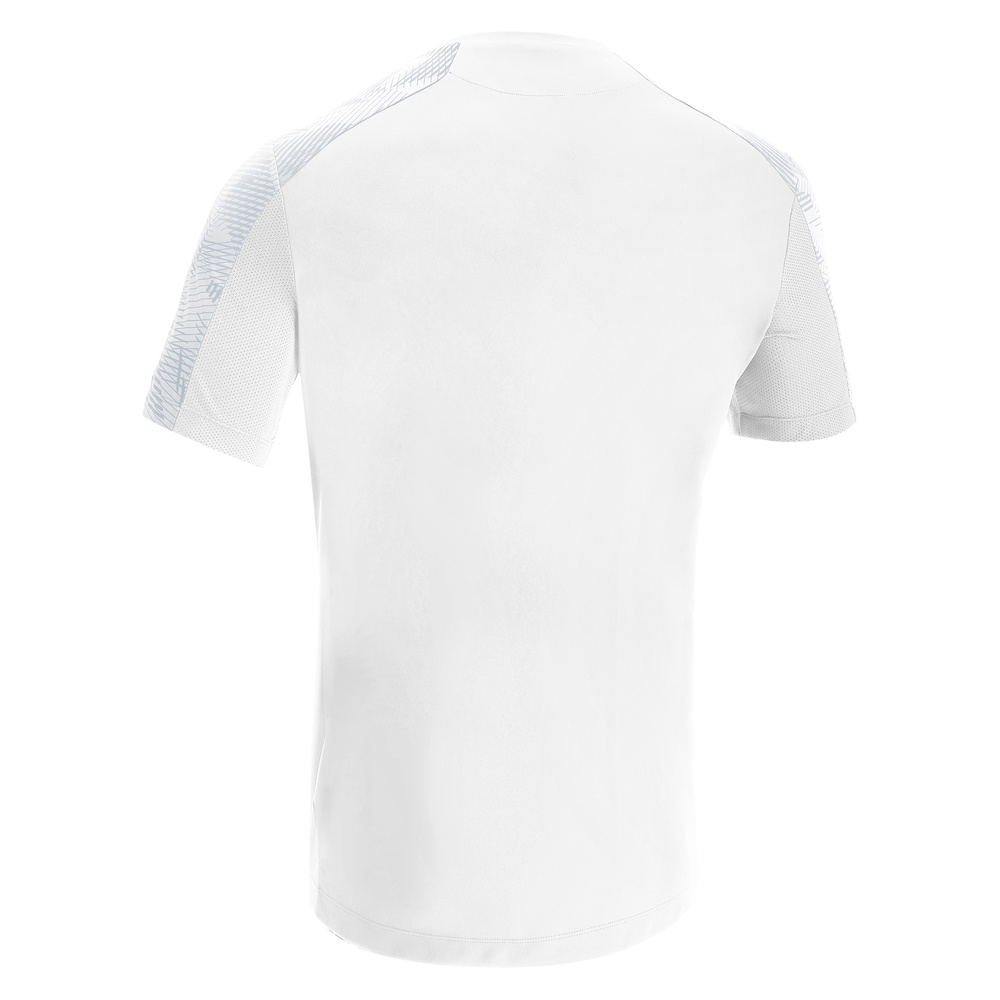 Koszulka meczowa z miękkiego materiału Softlock, wykonana w 100% z poliestru, z kontrastową teksturą z efektem optycznym na ramionach i rękawach. Siateczkowe wstawki na dole rękawów zapewniają przewiewność i lekkość. Dzianinowy dekolt w kształcie litery V i kołnierz z tyłu wykonany z materiału Softlock.